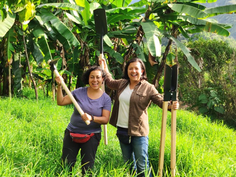 Aura y Diana son dos mujeres que aman el campo, se retaron a construir Madreagua un proyecto de agroecología, bioconstrucción y desarrollo comunitario y ha sido toda una aventura retadora y maravillosa. Han construido una casa en bioconstrucción de guadua y barro con sus propias manos, sembrando un cultivo agroforestal de café que crece con árboles nativos, aguacates, cítricos, bananos y plátanos, y han hecho de Madreagua su proyecto de vida con el que inspiran y comparten a las demás personas.